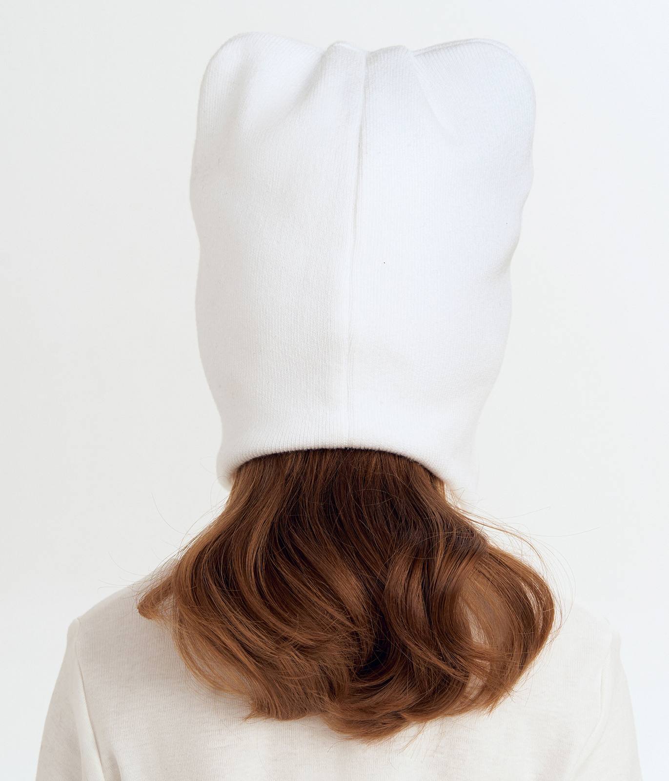 11714 White Knit Kids' Tie-Up Beanie with Ears – Rhinestone Unicorn | 100% Cotton (Knit & Lining) | Fall–Spring | Size 52–54 | Ages 3–5