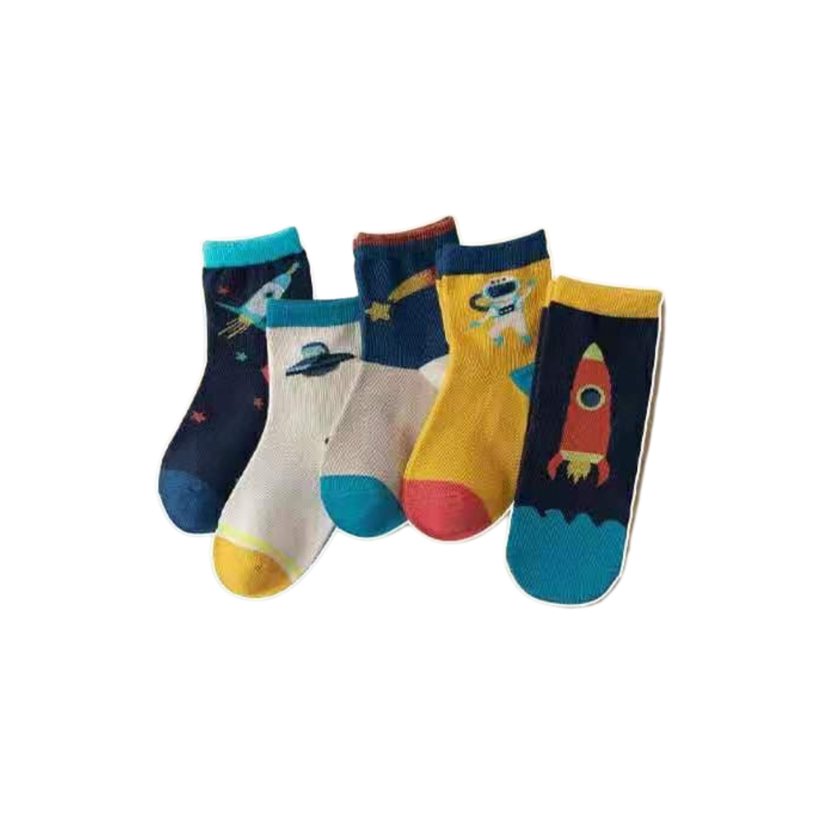2130 Boys' Space-Themed High-Cut Cotton Socks β Soft, Durable & Cozy | 5-Pack | Ages 1β8