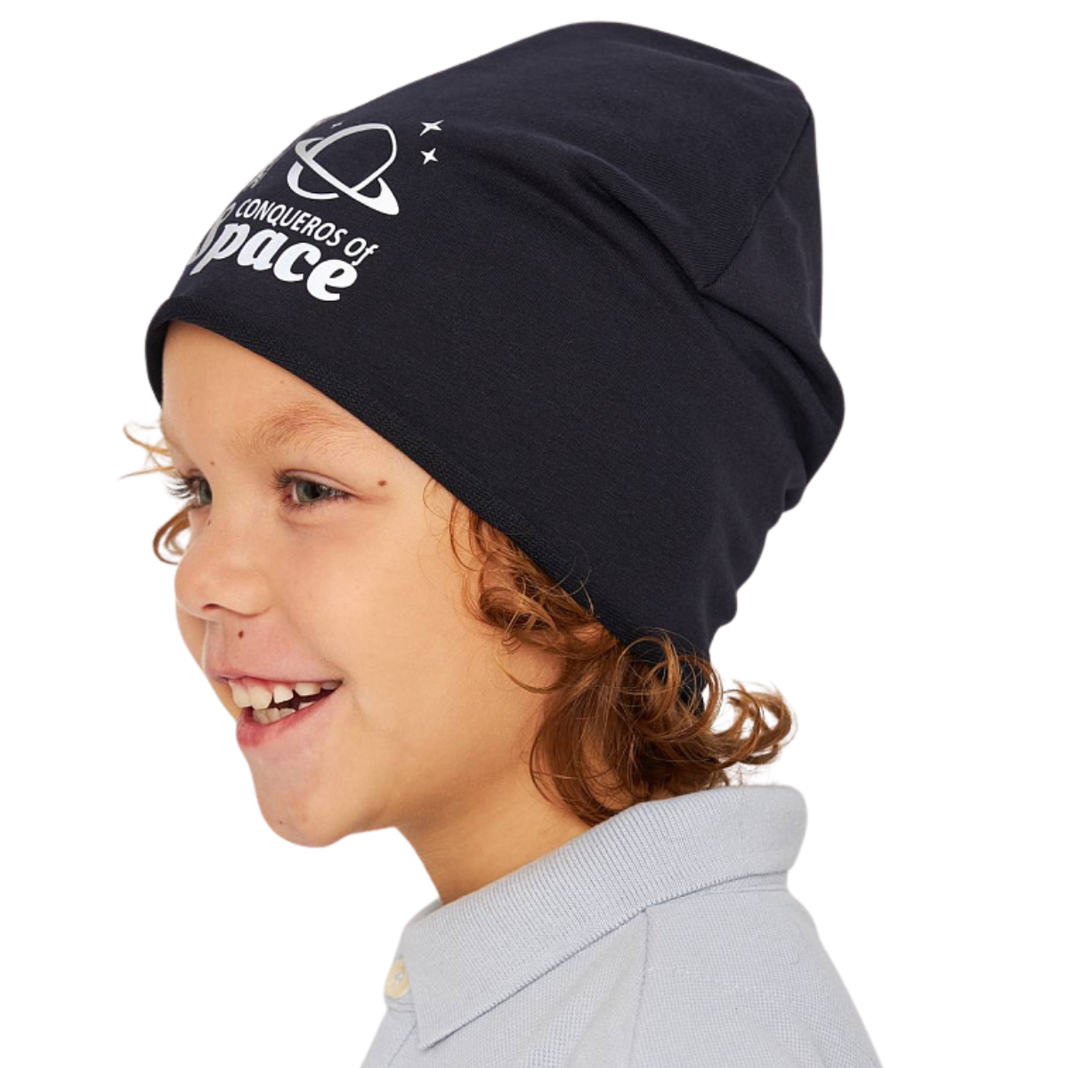10836 Kids' Cotton Beanie Hat β Reflective Astronaut Print "Conquerors of Space" | Size 52β54 | Ages 2.5β6 Y | Lightweight Slouchy Cap