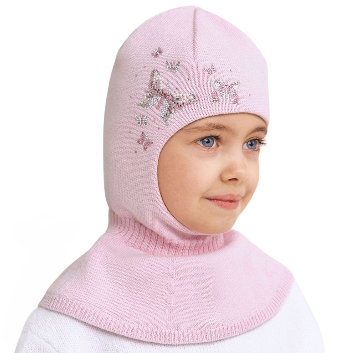 11712 Girls’ Knit Balaclava Hat – 100% Cotton Inside & Out | Embellished Butterfly & Floral Design | Ages 2Y | Spring/Fall Full-Coverage Hood