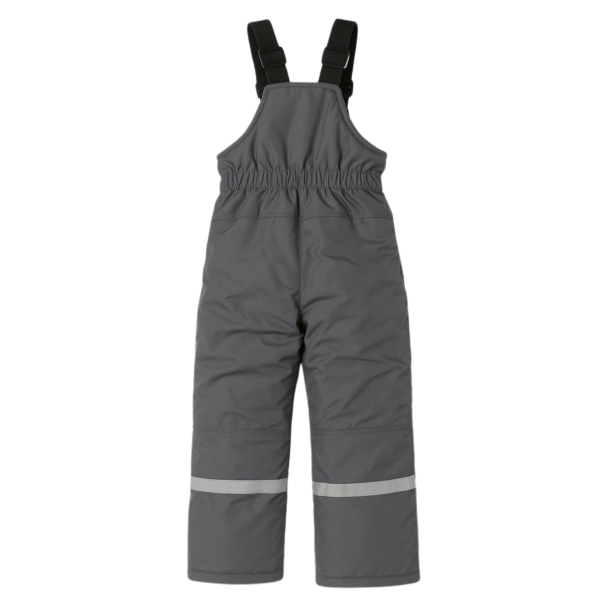 The insulated bib pants include adjustable straps for a secure fit and reflective details for improved visibility and safety.
