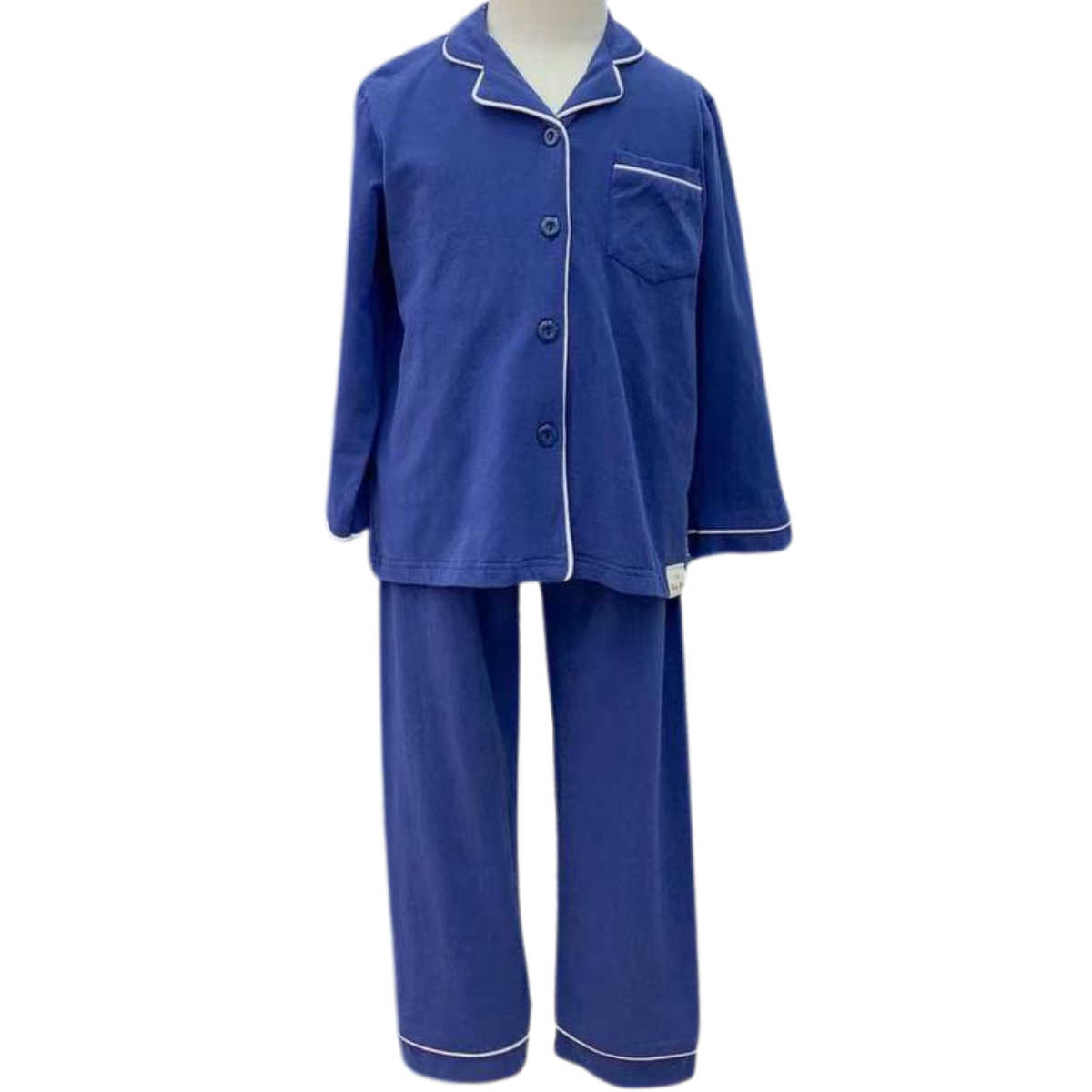 🚀 Boys' Mid-Season Pajama Set – Cotton Long Sleeve Button-Up Top & Pants with Fun Print | Sizes 90–140 cm