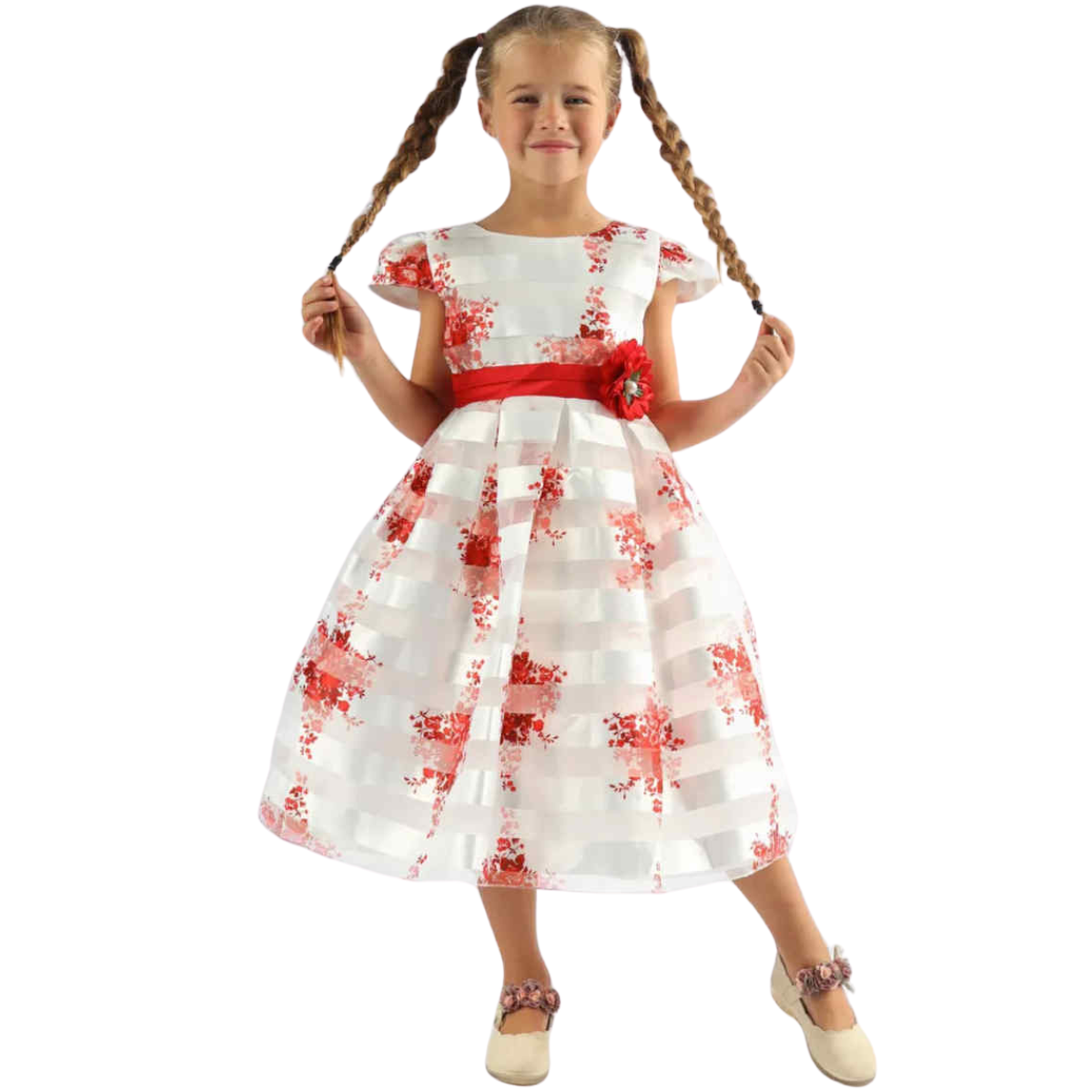 1824038 Girls’ Party Dress | Midi Skirt, Back Bow & 100% Cotton Lining | Ages 3–7