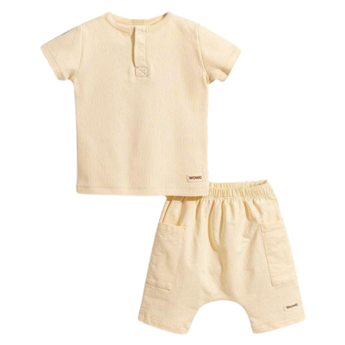 3523 Wowo Boys’ Summer Cotton Set – Solid Color T-Shirt and Shorts | Sizes 6 Months to 5 Years | Made in Turkey | Final Sizes – SALE