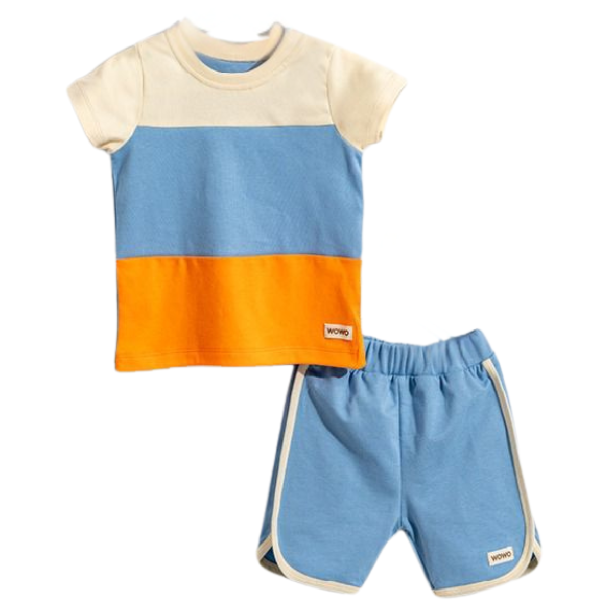 3522 Wowo Boys’ Summer Cotton Set – Striped T-Shirt with Three-Color Design & Matching Shorts | Sizes 6 Months to 5 Years | Made in Turkey | Final Sizes – SALE