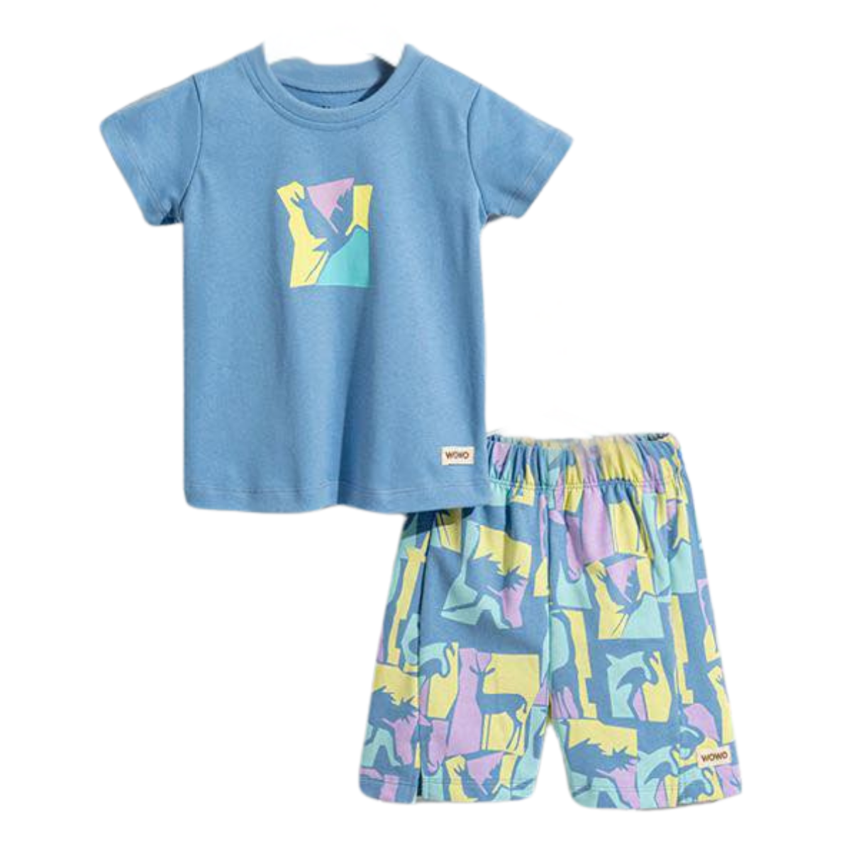3524 Wowo Kids’ Summer Cotton Set – Unisex T-Shirt and Shorts with Bright Prints | Sizes 6 Months to 5 Years | Made in Turkey| Final Sizes – SALE