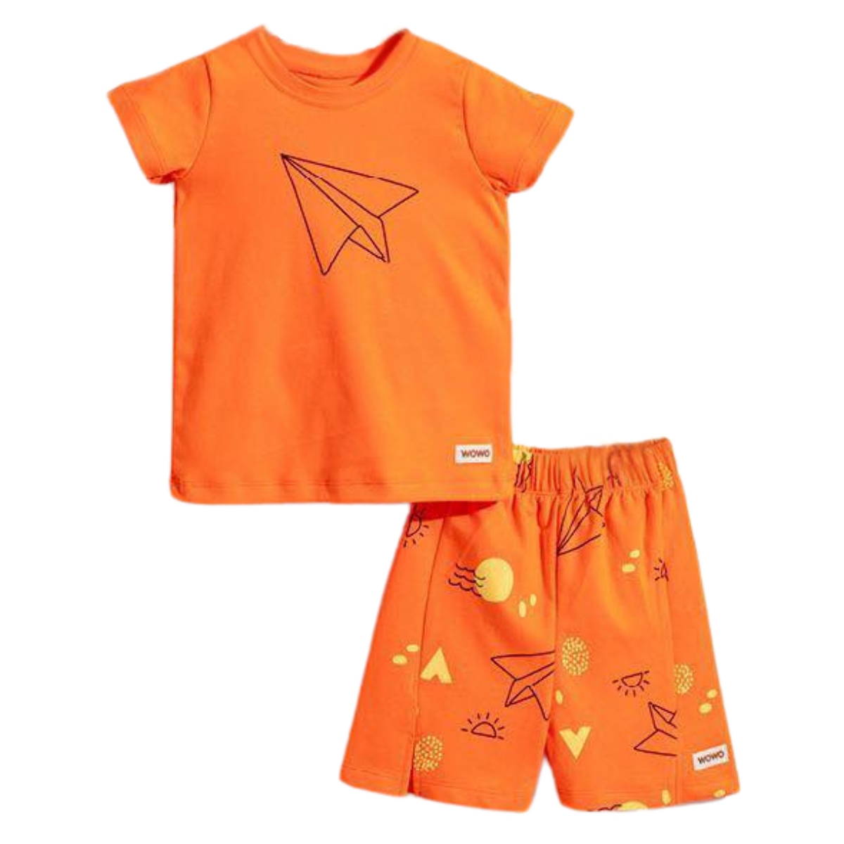 3524 Wowo Kids’ Summer Cotton Set – Unisex T-Shirt and Shorts with Bright Prints | Sizes 6 Months to 5 Years | Made in Turkey| Final Sizes – SALE
