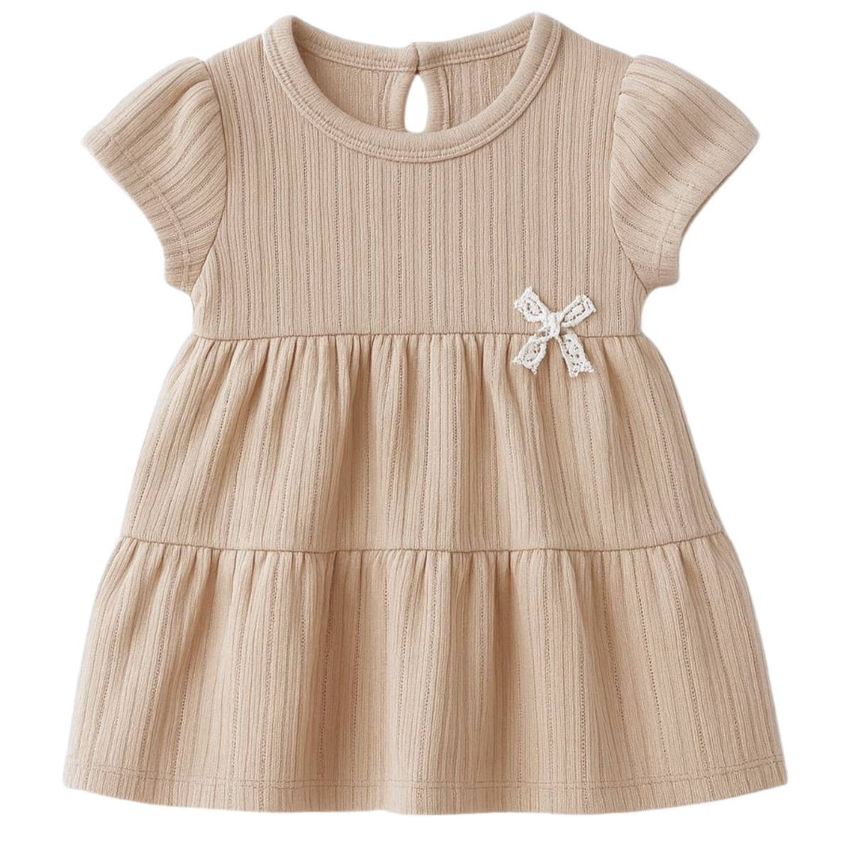 The dress includes a charming lace bow and a loose fit that allows freedom of movement. Perfect for everyday wear, walks, and sunny adventures — ideal for baby girls aged 6 to 24 months.