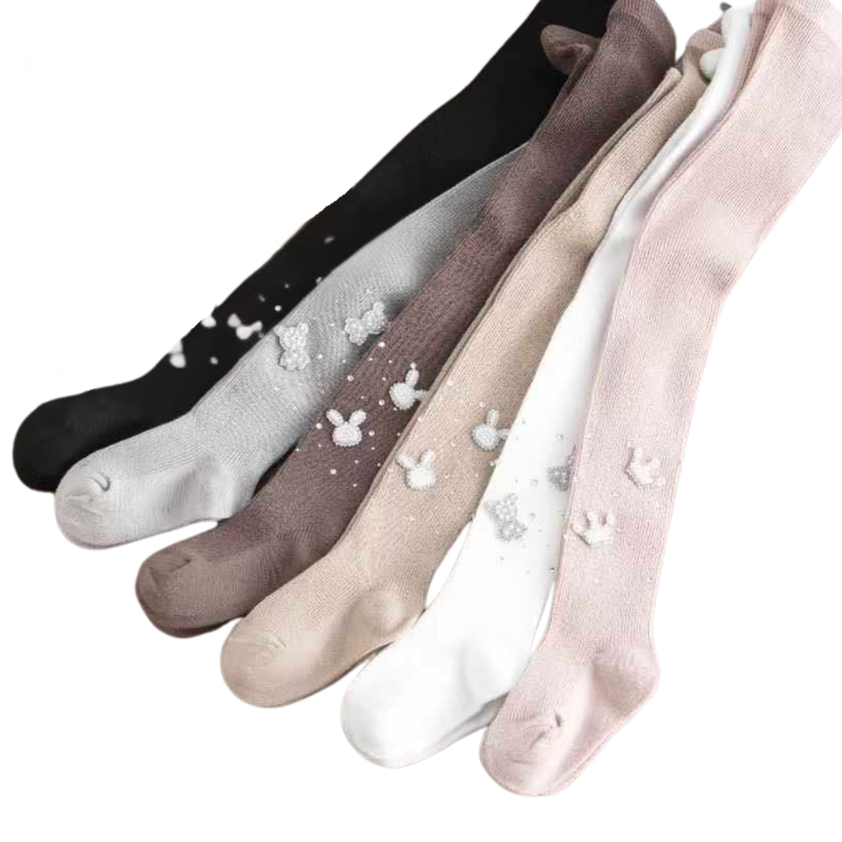 6102 Girls' Cotton Tights with Rhinestones – Crown, Bunny & Bear Designs | Spring–Fall | 6 Colors | Ages 2–10 Years
