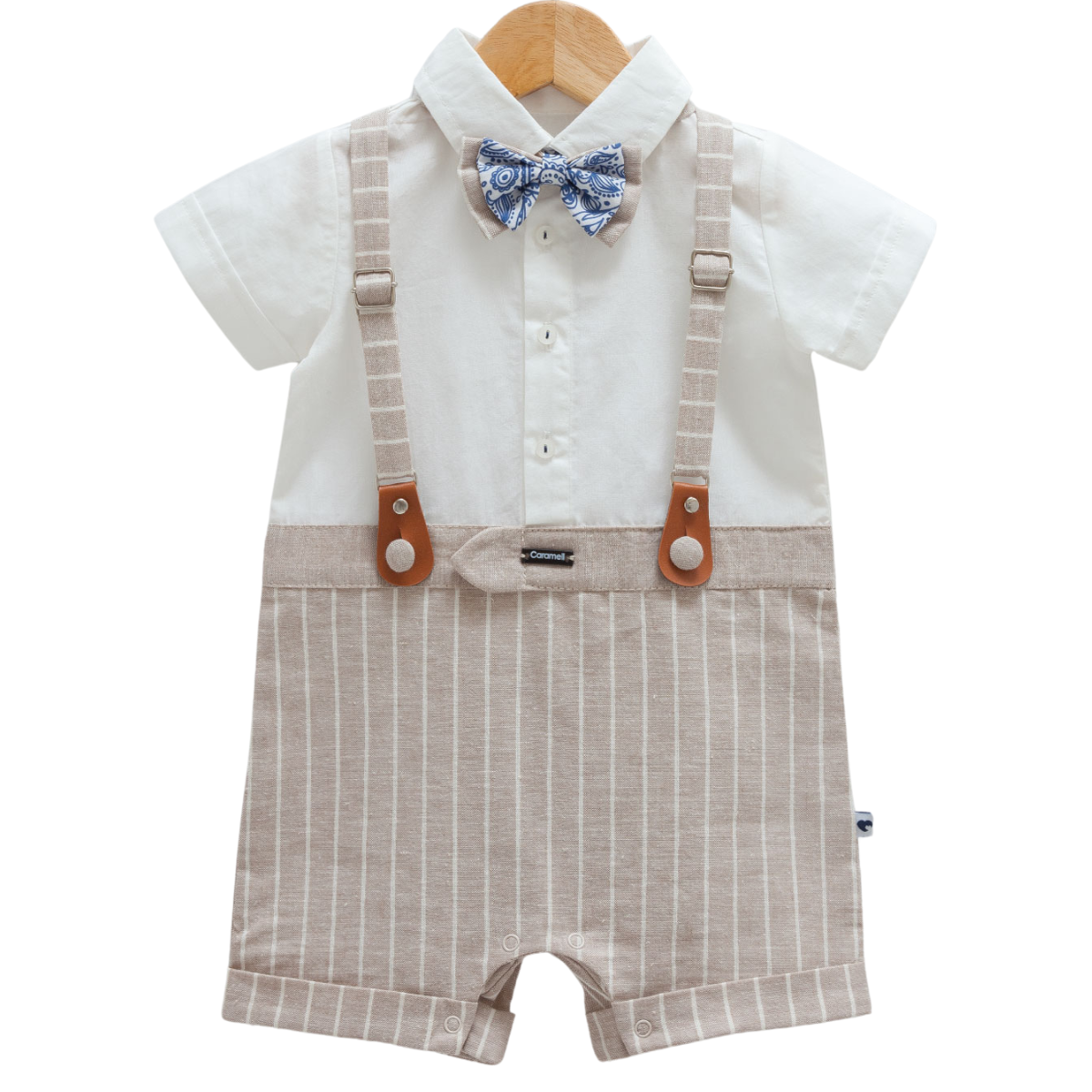 8912 Baby Short-Sleeve and Legless Romper with Bow Tie & Suspenders – 100% Cotton | 3-18 Months