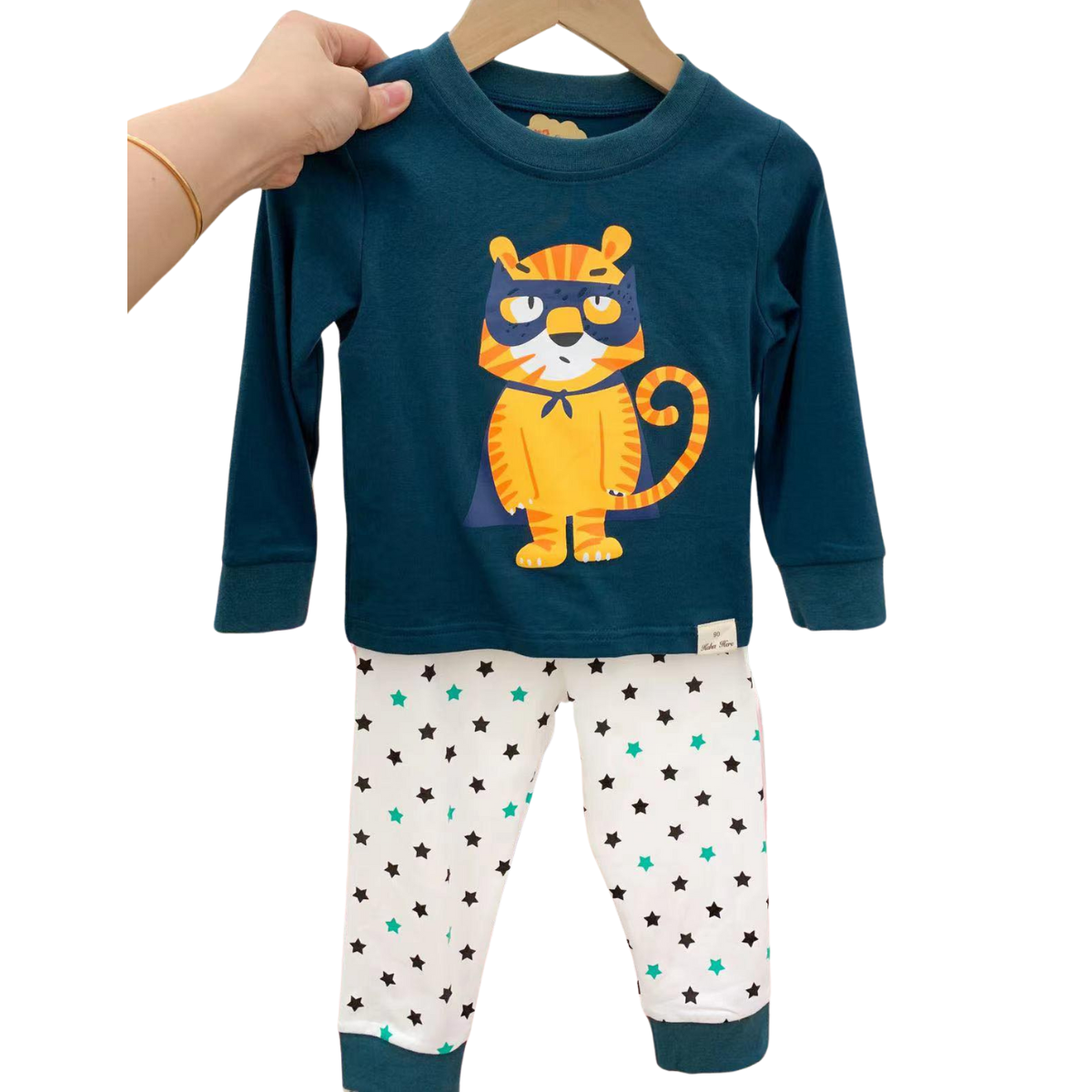 This cotton pajama set for boys is the perfect choice for cooler spring and fall nights.