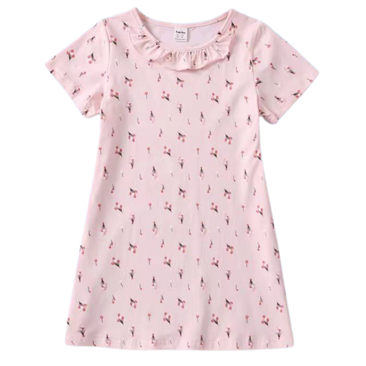 Girls' Summer Cotton Nightgown – Short Sleeve Sleep Dress with Cute Animal Print | Sizes 90–130 cm