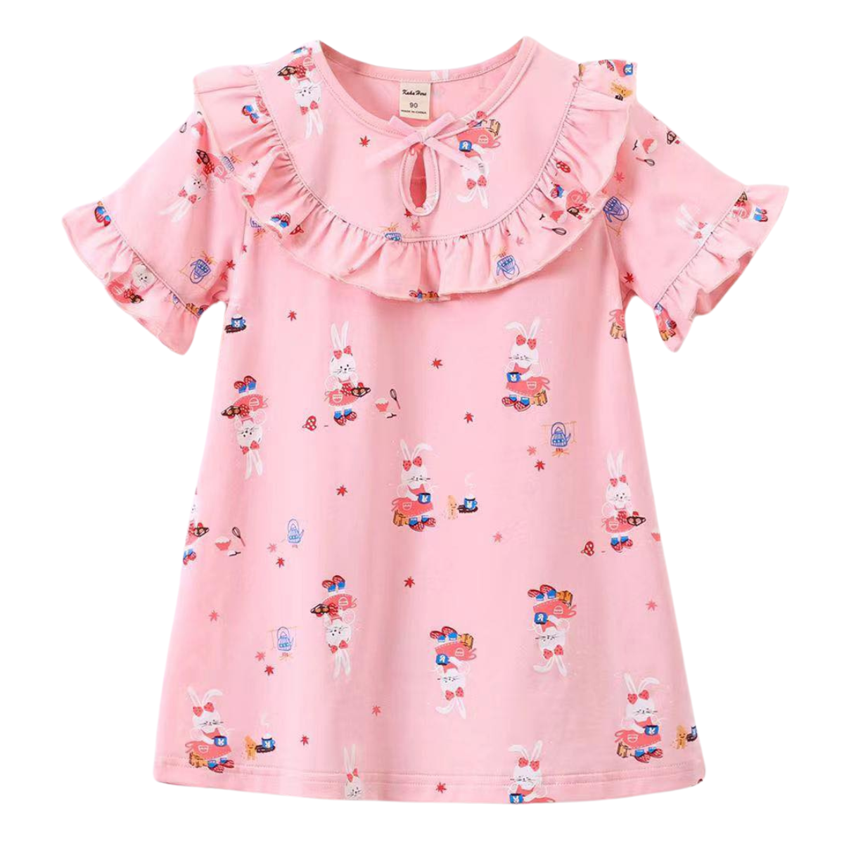 Girls' Summer Cotton Nightgown – Short Sleeve Sleep Dress with Cute Animal Print | Sizes 90–130 cm