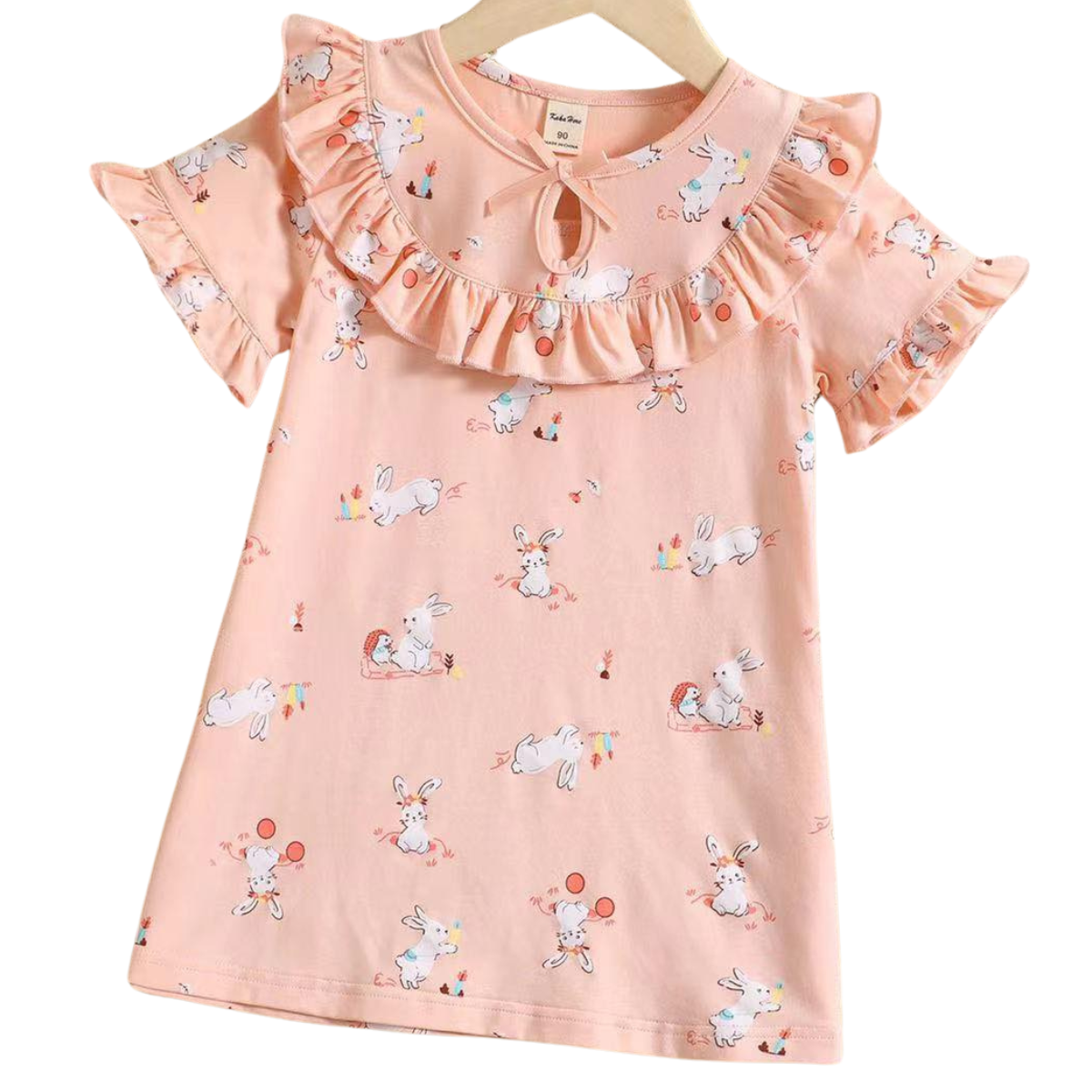 Girls' Summer Cotton Nightgown – Short Sleeve Sleep Dress with Cute Animal Print | Sizes 90–130 cm